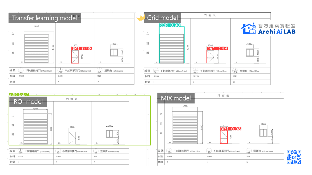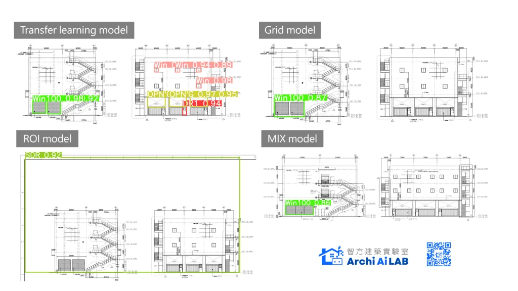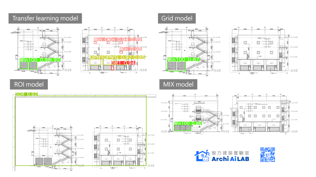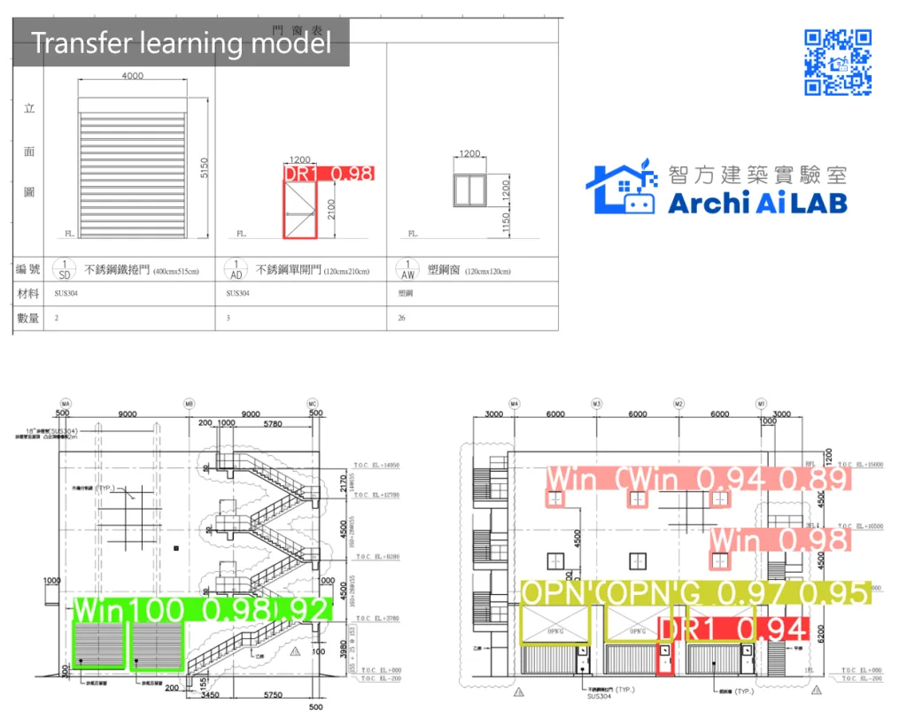從上面初步的實測可以發現,經過遷移學習後的模型,模型在局部圖紙的門窗圖例預測已經具有一定的辨識能力。